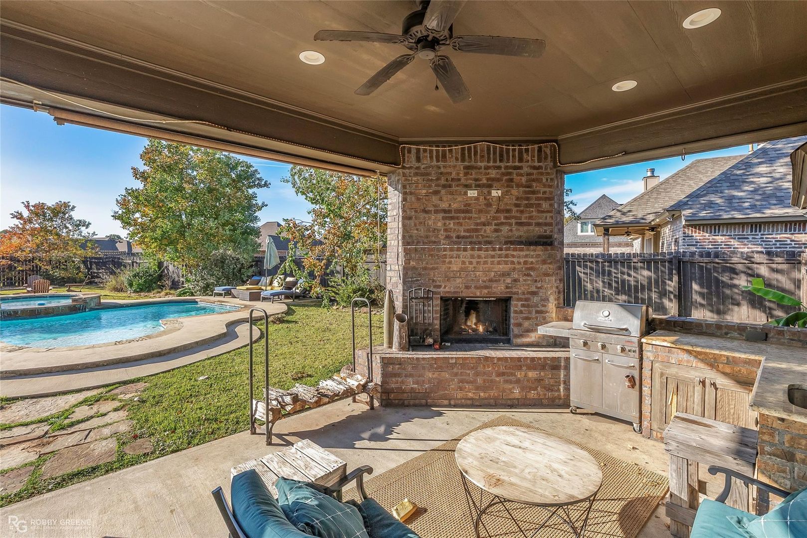 Spacious 5 bedroom, 3.5 bathroom, & 3423 SQFT home located in the desirable Belmere community. This property includes a handicap-accessible mother-in-law suite on the main level, along with a media room and multiple living areas. The kitchen features granite countertops, stainless steel appliances, a pantry, and a center island. Additional features include a heated swimming pool, indoor and outdoor fireplaces, and a covered patio. Energy-efficient upgrades include spray foam insulation, solar screens, and a tankless water heater. Lawn and pool service are provided as part of the lease.